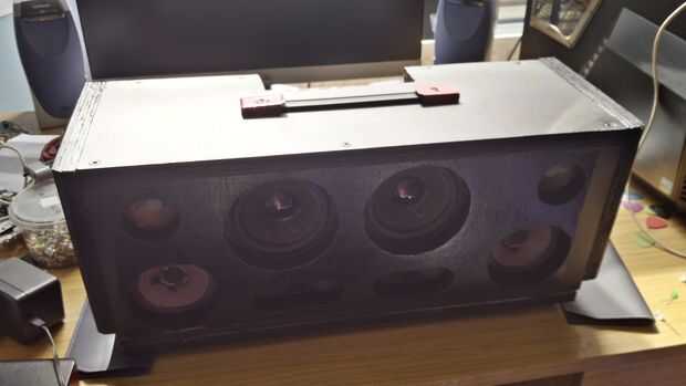 Bastante simple altavoz, duración de la batería muy buena, estructura en bluetooth.Está montado con elcorte láser madera contrachapada de 4mm (31 cm x 8 cm x 8 cm)4 x 2" controladores de altavoces portátil pequeño (EARISE AL-101, son sorprendentement