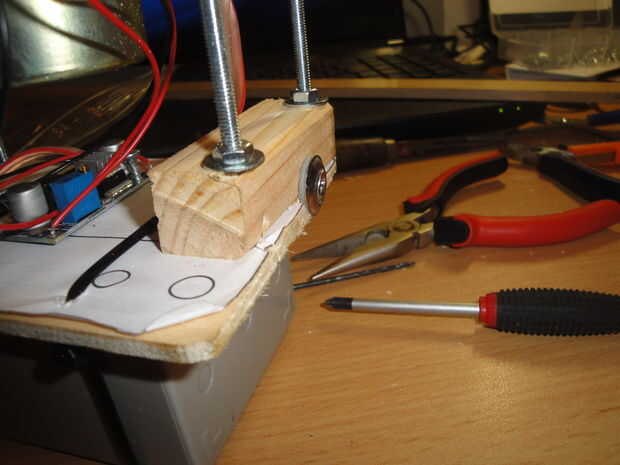 En el siguiente paso puse la tuerca cautiva en su lugar y prueba montado de lo fuera de la caja, para que no se caiga, cuando dentro de la caja.