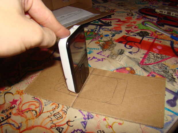 2B. Marque el contorno de su reproductor de mp3 que se establecen a través de la línea de profundidad de caja de paso 2a.