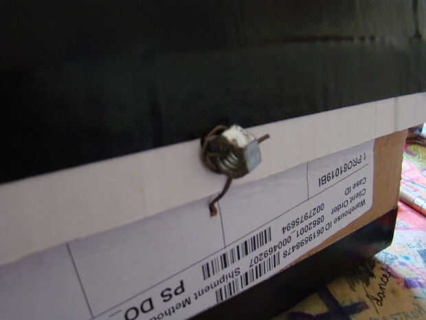 Para mantener las aletas cerradas, coloque unas pocas pulgadas de hilo en la solapa inferior. Haga dos agujeros en la aleta superior y usar algún cable más para montar algo alrededor del cual puede envolver el cable desde la solapa inferior. Utilicé una tuerca, pero no importa.