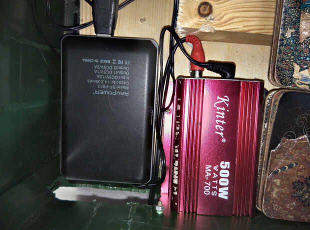 Después de que había preparado la caja que he construido en el amplificador y la batería. Para os adjunto una placa de madera en la parte inferior de la caja mediante unos tornillos. Y luego monta el amplificador en la placa (mina ya tiene algunos pequeños agujeros en él para montarlo). Acabo de poner la batería en it´s no montado todavía porque tengo pensado usar una batería con salida de 12v pronto pero todas las cosas alrededor de él lo mantiene en su lugar. Si haven´t perforan los agujeros para el amplificador en el paso 2 puedes hacerlo ahora cuando tenga el amplificador en el lugar.