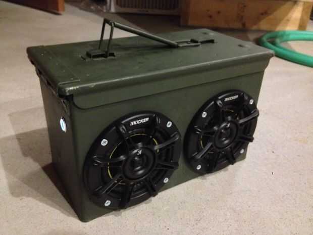 Esta munición puede Boombox es un altavoz portátil ruidoso, potente y duradero. Con un fácil diseño este es un proyecto perfecto para construir si usted está buscando un altavoz portátil para interiores y exteriores. Perfecto para la playa o donde qu