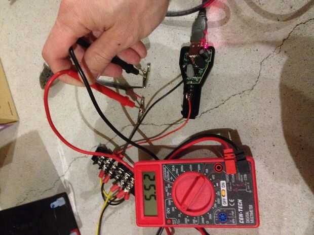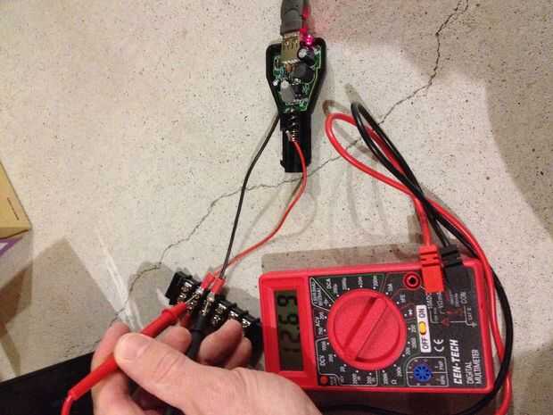 El siguiente paso en el cableado era reutilizar el cargador del USB 12v. La razón que opté por usar uno de estos era ya existe un 12v a 5v convertidor hecho para usted. Pagué 1$ para un cargador de trabajo. Abrí para arriba y recorta las conexiones NEG y los soldados juntos. Siguiente había soldado un cable más largo de POS. Puse todo nuevo juntos en el caso, había conectado al bloque de terminales y había probado la salida.