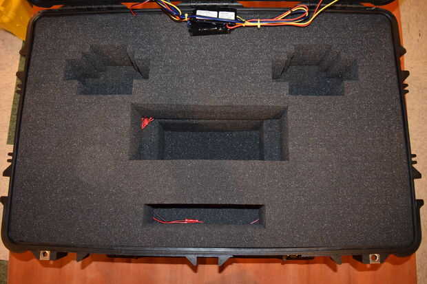 Una vez que hayas completado todo en le cableado tendrá que desplumar hacia fuera secciones de espuma. No tienes que usar la espuma pero lo hice para reducir vibraciones y movimiento de las unidades. Si se utiliza, asegúrese de permitir suficiente espacio entre la espuma y la unidad principal, la placa en la parte posterior de la unidad principal se pone realmente caliente. La espuma ayuda a disipar el calor pero no permita que la unidad principal entren en contacto con él ya que podría derretir la espuma y causar un incendio o fusión de los cables destruyendo su caja. Se puede ver en la imagen como mina arrancaron y funcionó durante 5 horas directamente a una barbacoa sin problemas. Para arrancar los puntos es tan simple como bajar la tapa y dejando una ligera impresión de la espuma o con la mano para encontrar el lugar adecuado para arrancar. La segunda capa de espuma también ayuda a mantener las pilas más firmemente en su lugar así sin necesidad de perforar agujeros adicionales en el cuadro.