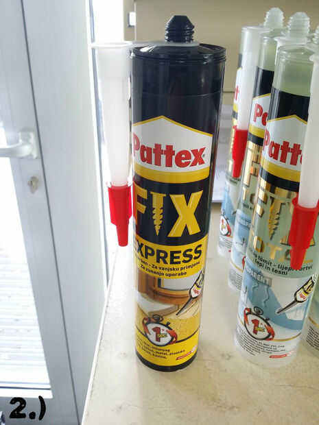 2.) que compré fijar Pattex cola para madera y paied extra de 5€ para él.