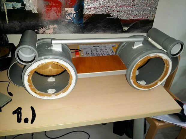 2.) como se puede ver en la segunda foto ya frustrado portador madera para amplificador solo para ver cómo se verá. Y que los altavoces de agudos ver qué hacer con cables :)
