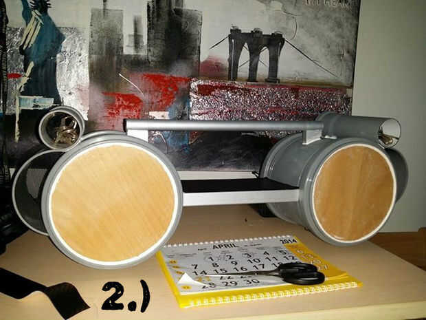 4.) he utilizado pequeñas tapas de una vieja pc para montar directamente en el BoomBox. Lo cubrí con auto - anillos adhesivos para antiscratch (tablas... ect..)