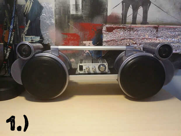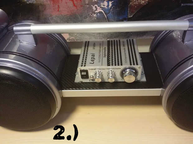 2.) he decidido poner algunas decoraciones con papel carbón en el BoomBox para que se vea más atractivo. Que no podía esperar a probarlo lo detuvo con decorándola y decidido para la prueba de poco.