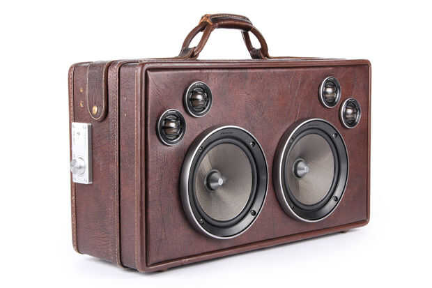 El Boombox maleta es una maleta vintage convertida en un boombox, con dos subwoofers y cuatro tweeters. El sistema entero es alimentado por dos baterías de plomo conectadas a un controlador de carga, por lo que el boombox se puede cargar mediante una fuente de alimentación AC/DC o incluso un panel solar. El amplificador mini ofrece 25 vatios de potencia por canal, dando el sistema mucho de volumen, comparable a un sistema de audio. Definitivamente podría sacar al parque y comenzar su propia fiesta de mini o utilizarlo para reproducir música a todo volumen en su habitación. Lo que más me no gusta de este proyecto es que ningún boomboxes dos maleta será siempre el mismo. Dependiendo del tipo de maleta que usas y el tamaño y la configuración de la configuración del altavoz, hay un montón de espacio para aplicar su propio estilo personal para el proyecto y hacer algo verdaderamente único.
