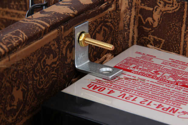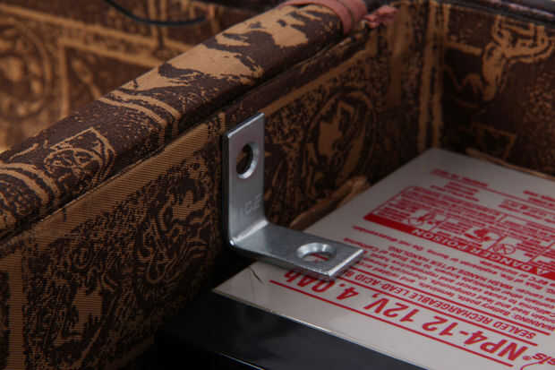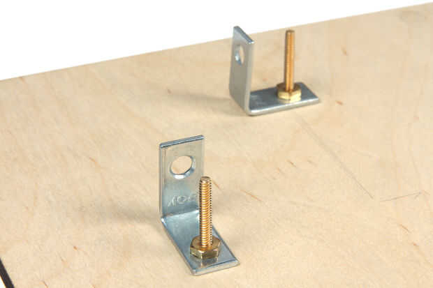 Use pequeños soportes en L para asegurar las dos pilas contra las esquinas inferiores de la maleta.