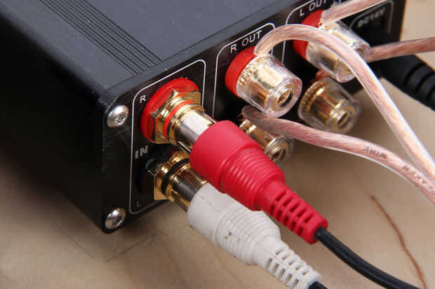 Enchufe los extremos rojos y blancos del cable RCA al entrada del amplificador.