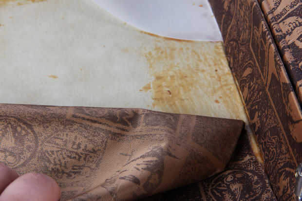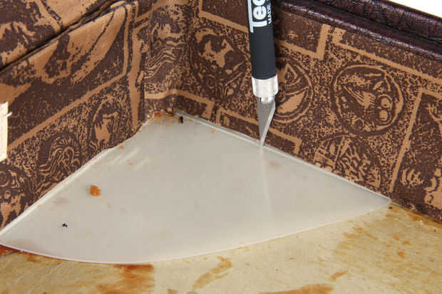 usé una hoja otra vez para cortar el forro de la valija, del lado donde lo planeado en mis altavoces de montaje.  También corté algunas piezas de esquina combado, plástico que fueron para arriba.