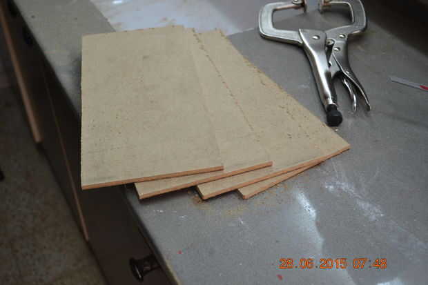 Por lo tanto, mide la altura y la anchura de la caja, marcó y cortar 4 piezas iguales.