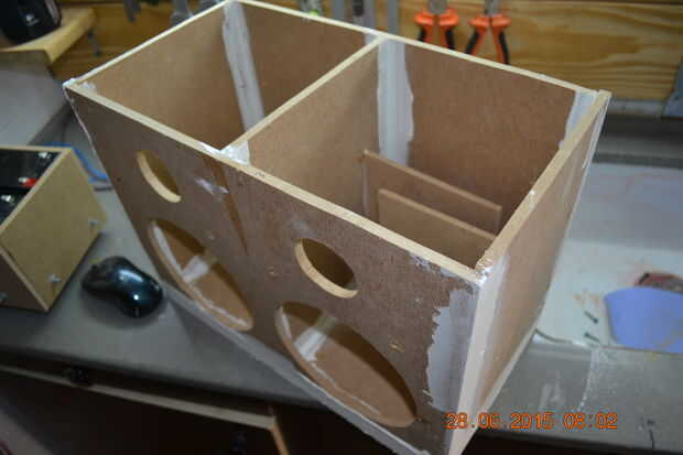 Después de pasar algún tiempo en la web, he entendido que añadiendo una particiones adicionales al recinto boombox el sonido mejorará, y además permitirá el "aire" en una mejor manera lanzó el puerto reflex.