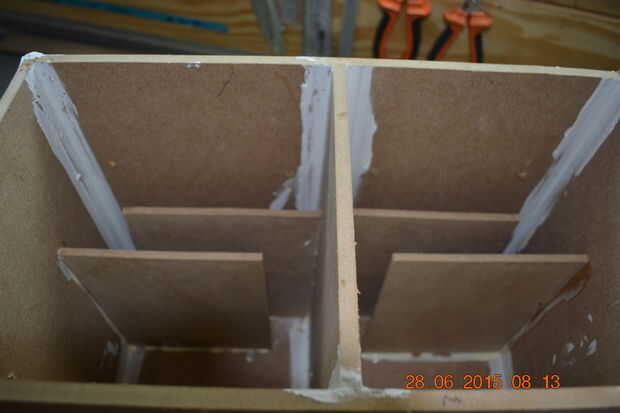 Paso 8: Añadir medio particiones para las particiones de woofer y el agregado utilizando pegamento de madera de elmer