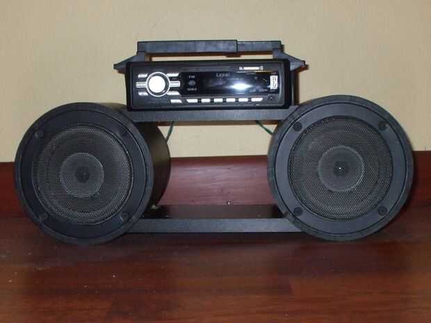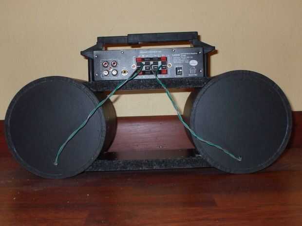 Los recintos de altavoces están hechos de un tubo de papel que suelo hoja viene rodado sobre, muy robustos sobre gruesos muros de 3/8" pero pueden usar acopladores de desagüe de PVC de 6". Los altavoces son de 5.25" coche. La construcción de los recintos del altavoz se hace similar a la pistola de cabeza de droide construido por jutorres.