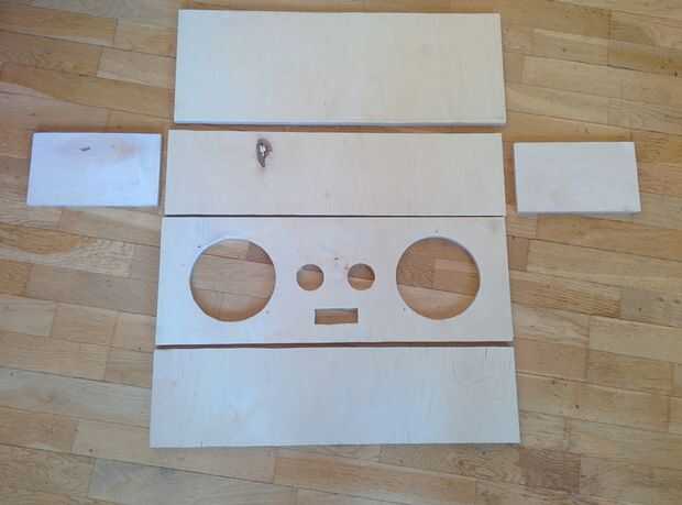 - Corte agujeros para altavoces, amplificador y cualquier cosa que pueda necesitar un agujero (interruptores, cables minijack para la música etc..)