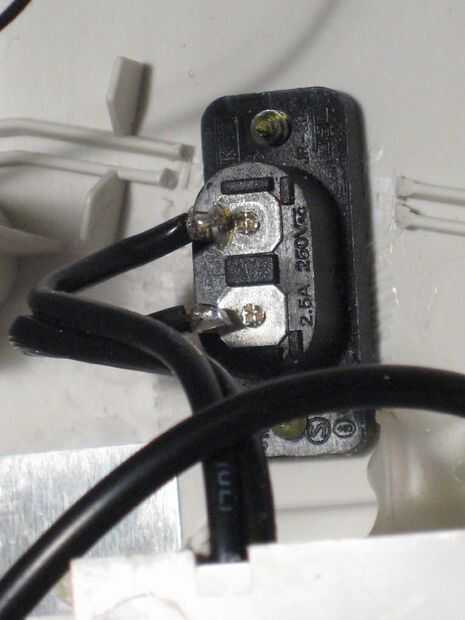 Corte una abertura para el conector del cable de red de la opción en el panel posterior. Yo usé un cable IEC tipo 7 'cassette' y conector). Conector de posición y tornillo para asegurar. Corte el cable de entrada de tamaño y los dos cables de la soldadura.