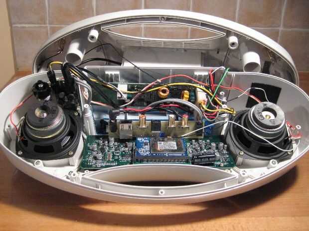 Tome el squeezebox de su lugar seguro, posición y tornillo en sus bornes. Coloque la placa de potencia ITX y atornillar. Ubicar la posición de tamp, corte los hilos de altavoz género existentes a la longitud. la soldadura como se muestra en el diagrama. Si desea agregar la línea en addon, soldar el cable coaxial de ahora. Coloque el tamp y atornillar. Pegamento caliente del pote de volumen. Junta adyacente a la tamp directamente en el interior de la caja. Asegúrese de que el pote de volumen. es accesible. Gire el eje de volumen a medio camino a través de su recorrido. Se puede ajustar a su gusto más adelante.