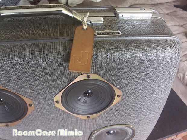 Hola,El Boomcase es una maleta vintage convertida en un boomcase,Tiene dos woofers y dos tweeters. El caso es alimentado por una batería de plomo-ácido.El boomcase puede cargarse a través de una fuente de alimentación de 230V. El amplificador entrega