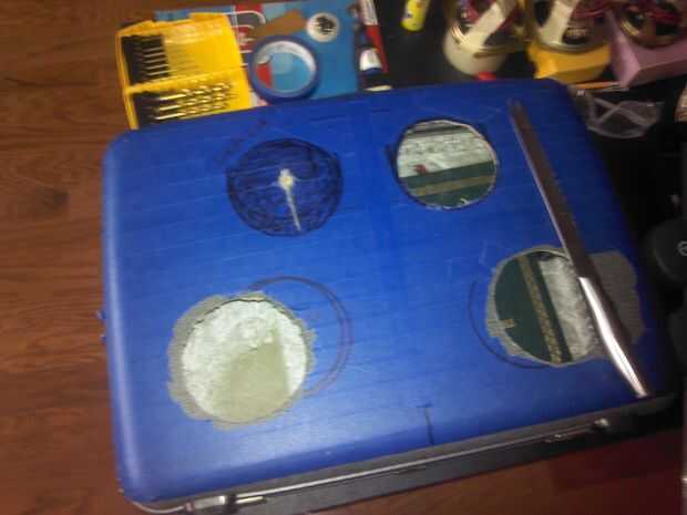 -Perforar la partida y corte en la caja, un router sería lo ideal pero sólo tenía un cuchillo de cocina de acero inoxidable de uno de esos infomerciales que mi mamá me consiguió, nunca tuve la necesidad de cortar un pavo congelado o ladrillos con él.