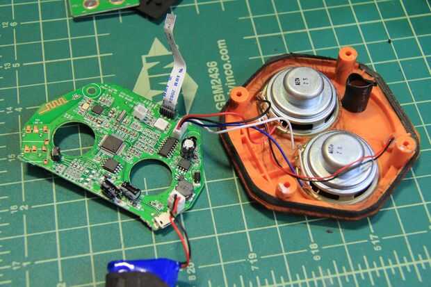 - De audio Bluetooth. Inicialmente, utilizamos la electrónica de un Rex Boombotix porque nos encantó el volumen y la calidad. Pero rompiendo bocinas bluetooth nuevo a rasgar hacia fuera la electrónica fue rompiendo nuestros corazones, así que encontramos un tablero OEM bluetooth audio receptor que era lo suficientemente pequeño como para caber en el maletero.