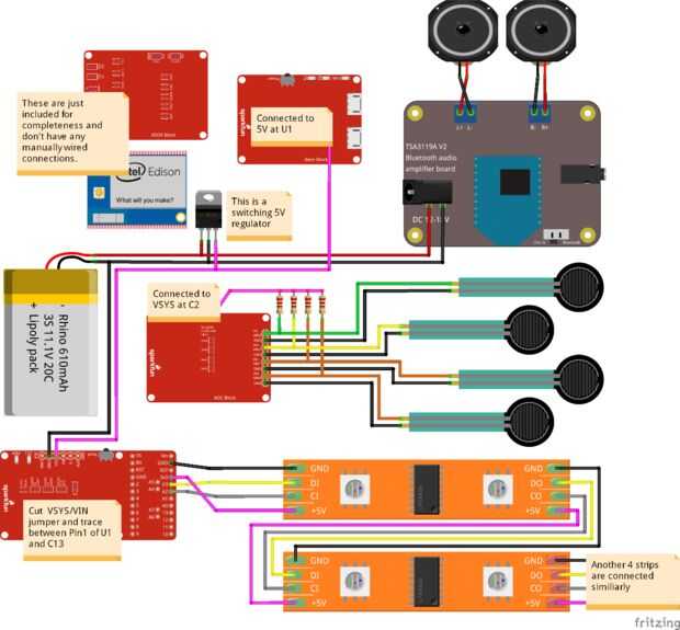 - Edison Arduino cuadra de SparkFun. Utilizado para controlar los LEDs.