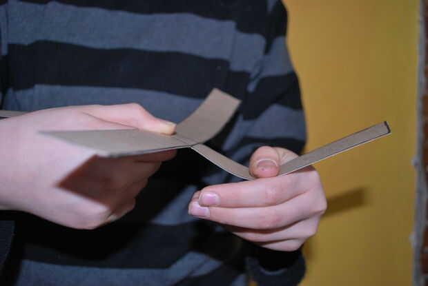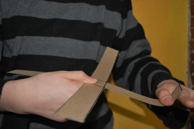 la única manera que el bumerán volverá a usted es si usted forma las cuchillas palabras. Coloque una de las láminas entre los dos dedos Ejecute su upword dedos comenzando en el centro de la X al final. Repita esto en todas las cuatro aspas uniformemente.