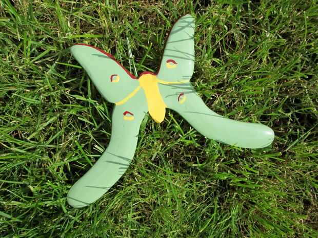 Boomerangs temáticas no son nada nuevo. Casi todos los objetos posibles siempre se ha transformado en un boom, como aviones, cuchillos, botellas de cerveza, chihuahuas (con tres wawas puede hacer un triblade), aves, gatos etc.. Hice mi parte, hace mucho tiempo, experimentando con las polillas de la luna, la ballena de cuentos y pollo las alas...