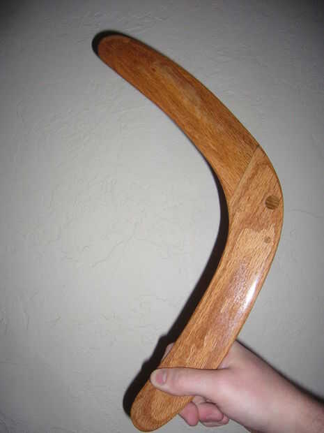 Hola mundo, este es mi primer inescrutable y espero que les guste!!!Un boomerang es una herramienta lanzada, construida típicamente como una hoja plana, que está diseñada para girar sobre un eje perpendicular a la dirección de su vuelo. Un boomerang
