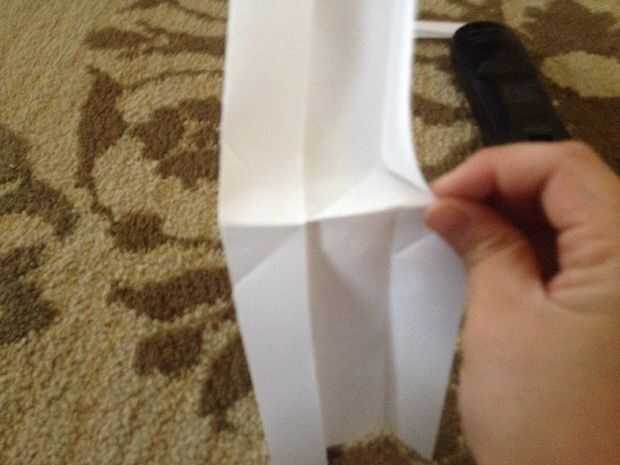 Con su prensa de pulgar la parte superior la mitad de la aleta derecha detrás donde sería luego doblar todo al revés