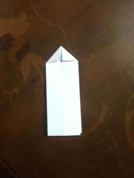 tome un pedazo de papel de 8.5 por 11" y doblar por la mitad del camino largoPS: este es mi primer instructable así que bueno.Paso 1: step2 doblar la parte superior dos esquinas hasta el pliegue el último pliegue hizo entonces doble el triángulo en l