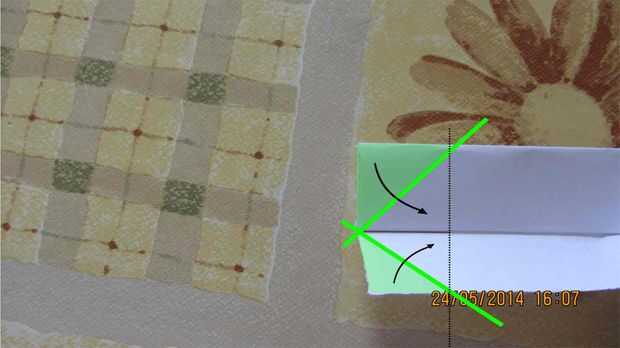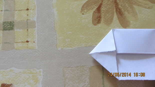 Papel palanca abra un poco y doblar ambos lados hacia el centro. Pliegues bien y despliegue.