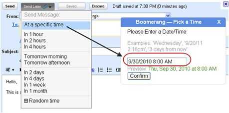 b. Haga clic en el icono de Enviar más tarde
