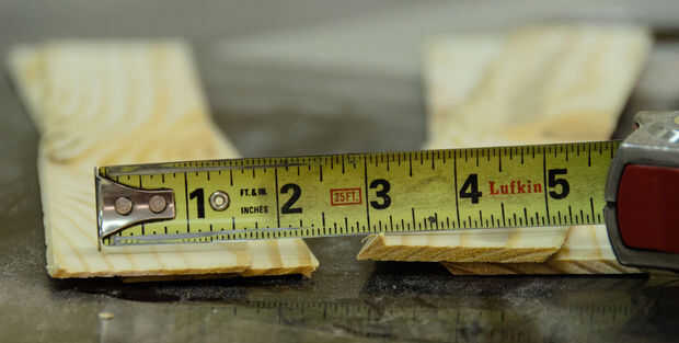 Cortar dos tiras de su pedazo de madera. Las dimensiones de la tira final deben ser ~ 2 pulgadas de ancho, 1/8-1/4 pulgada de espesor y de 18 a 24 pulgadas de largo.