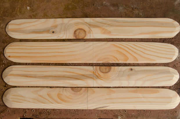 Balance cada pedazo en un borde estable, convenientemente afilado (por ejemplo, un filo de la navaja, un lápiz, una regla, un hueso de la costilla). Marque una línea al alcanzar el equilibrio (con la tira, no con la vida). El centro de equilibrio no siempre estará en el centro exacto, dependiendo de cómo simétricamente hiciste el biselado.