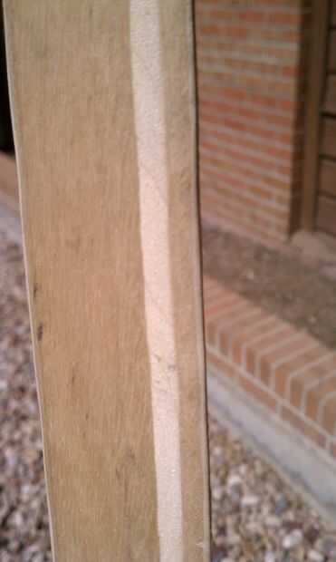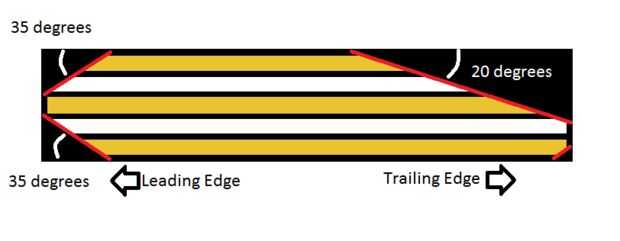 Arena 2 de las 5 capas de la madera contrachapada a sobre un ángulo de 35 grados en la parte superior e inferior del borde de ataque.