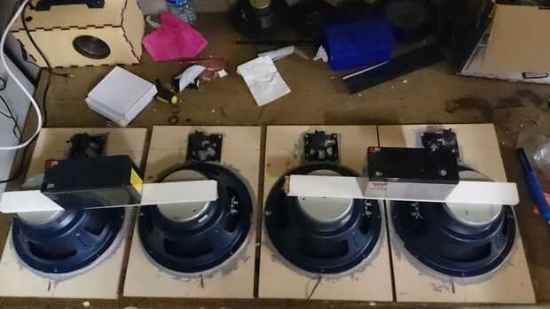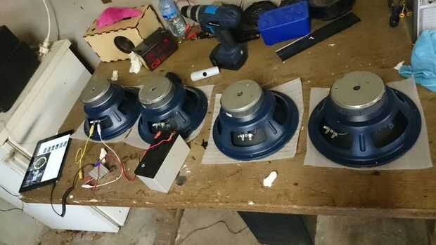 Hemos conectado los woofers para ver si todos trabajaban. Una vez que estén montados debe durar toda la vida. La parte superior de una construcción tan fuerte es que probablemente no se dañaron. La desventaja es que si logramos conseguir dañado, intercambio que es casi imposible.