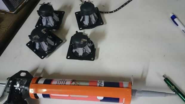 En el cuadro 3 que los woofer y el tweeter se montan con el sellante de acrílico, que es secado en cuadro 4.