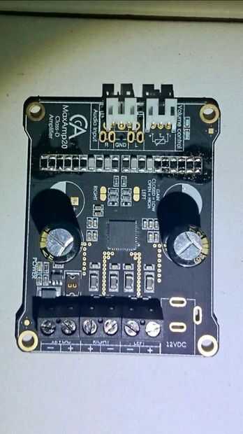 El amplificador es 90% + eficiente y puede 2x15W en 4 ohms de salida. Esto no parece mucho, pero este sistema es tan eficiente que pone hacia fuera 101 decibelios con 1 vatio a un metro. Así que si 1W ya es muy fuerte, imagínate 30W volumen es; p.