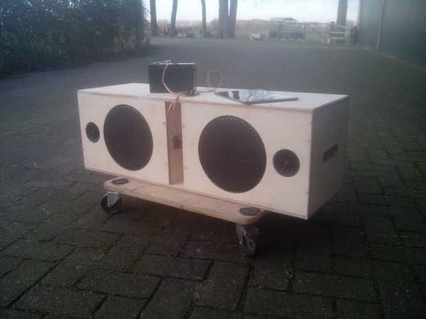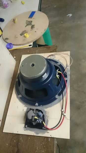 Lo siguiente que usted sabe: está montado. Ahora es el momento de alambre la cinta sobre el altavoz es evitar que la soldadura caliente caiga sobre el cono mientras se suelda. Los altavoces deben estar conectados en fase: cada altavoz necesita moverse hacia o lejos del centro al mismo tiempo.