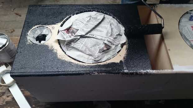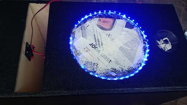 La tiras de LED todavía brillo brillante a pesar de las piezas ligeramente pintadas. Utilizamos Warnex/Duratex, un tipo muy resistente de pintura estructurado que se utiliza a menudo con equipo de audio profesional.