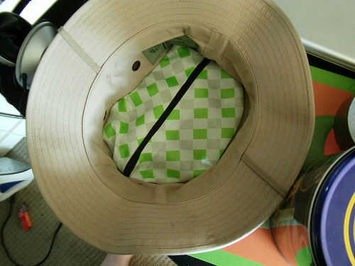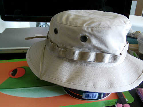 Tengo la idea de tener un compartimiento secreto en un sombrero de un episodio de Survivorman donde un chico tira un gancho y línea fuera del compartimiento con cremallera en su sombrero. Intenté buscando en línea para comprar uno para mí pero no tenía mucha suerte de encontrar alguno, así que decidí que era tiempo para hacer una.