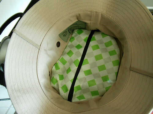 Si su sombrero es como el mío entonces vas a tener que coser el forro con cremallera en el sombrero muy cuidadosamente para asegurarse de usted sólo entran y salen de la capa interna y no la exterior para que no vean las puntadas por fuera.
