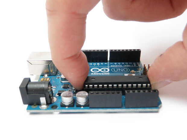 Salvo que, me parece que nada flaca, plana y metal funciona bien. Por ejemplo, me gusta usar una mini cabeza plana Destornillador o una espátula dental para hacer esto. Una cuña fin debajo de uno lado, suavemente mueva un poco para levantarla y entonces repito esto en el otro lado. Después de ir hacia adelante y hacia atrás un par de veces, el chip debe ser libre y pernos no deben ser doblados.