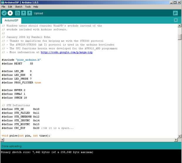WEW que deba cargar el bosquejo de la ISP en el arduino.