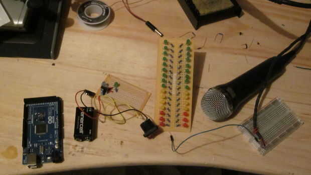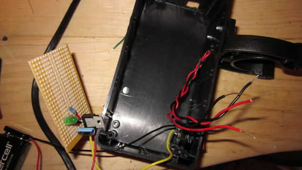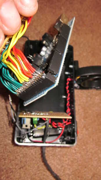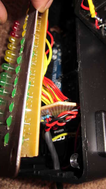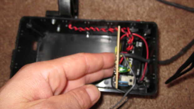 Una vez que tuve todos los subconjuntos probaron y elaborado es el momento para tratar de meter en la caja. Agian un poco de alas lo. Tuve que cortar un pequeño rincón de la LED de array de pcb. También corte el pcb de la fuente. Lo primero fue el titular del mic. Entonces encendido/apagado, la batería, fuente de pcb. Luego soldamos mis conexiones restantes y había comprobado todo, otra vez.