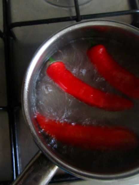 Si tus chiles son muy picantes, o les está sirviendo a los amigos que desea mantener, probablemente desee reducir el calor primero. Escalfar los chiles en agua hirviendo por un par de minutos, luego colar.