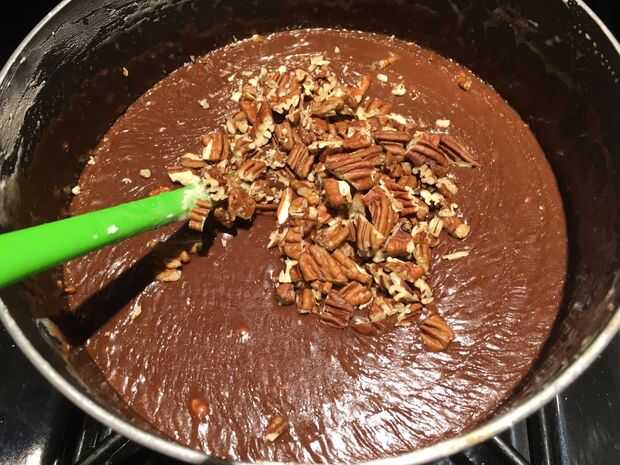 Una vez que se incorpora el chocolate, verter tu las nueces y revolver.