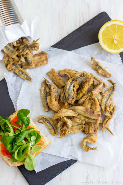Boquerones fritos profundos son típicos y la mayoría de los alimentos populares tapas en España. Hacen de un cumpleaños excelente sandwich o un arrancador y rociados con jugo de limón son difíciles de resistir. También van bien con la cerveza!